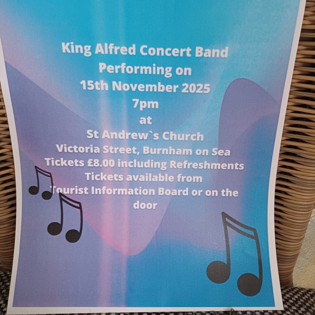 King Alfred Concert Band at St Andrew’s Church Burnham 15th November 7pm Posted on Nov 15, 2025 by deanerywebsite Share this: Click to share on X (Opens in new window) X Click to share on Facebook (Opens in new window) Facebook Like Loading... Related
